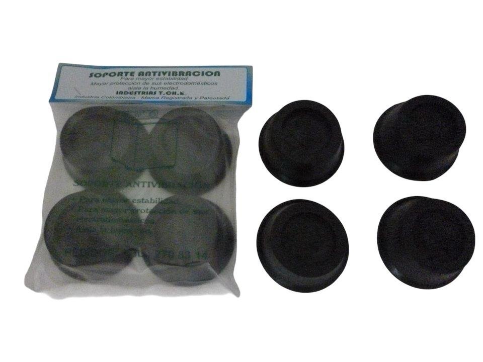 Elaborada en PVC para adherirse mejor al suelo, evita la Antivibración, da estabilidad a los electrodomésticos, los protege de contacto con líquidos y aísla la humedad, paquete por 4, medidas de ancho 8 cm x alto 4 cm.