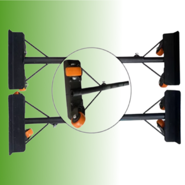 patineta metálica para congeladores, nevecon, muebles, entre otros, caja metálica y tubo redondo, 8 rodachinas giratorias, (2 frenos), refuerzo en varilla, pintura electrostática color negro, medidas cerrada 60 cm y expande a 90 cm, carga máxima de 350 kg.