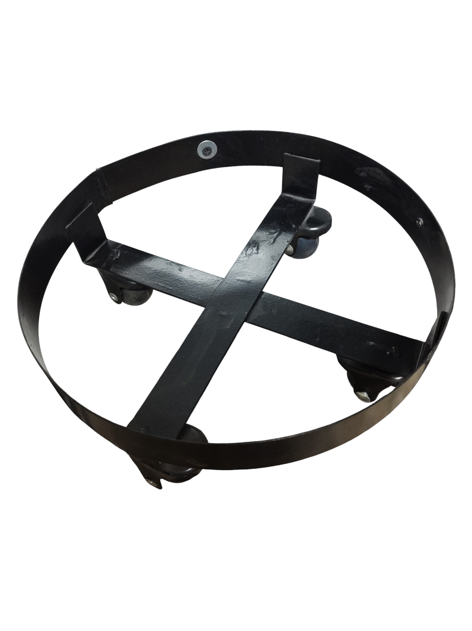 Soporte metálico con ruedas plásticas, par materas y cilindros, pintura electroestática.